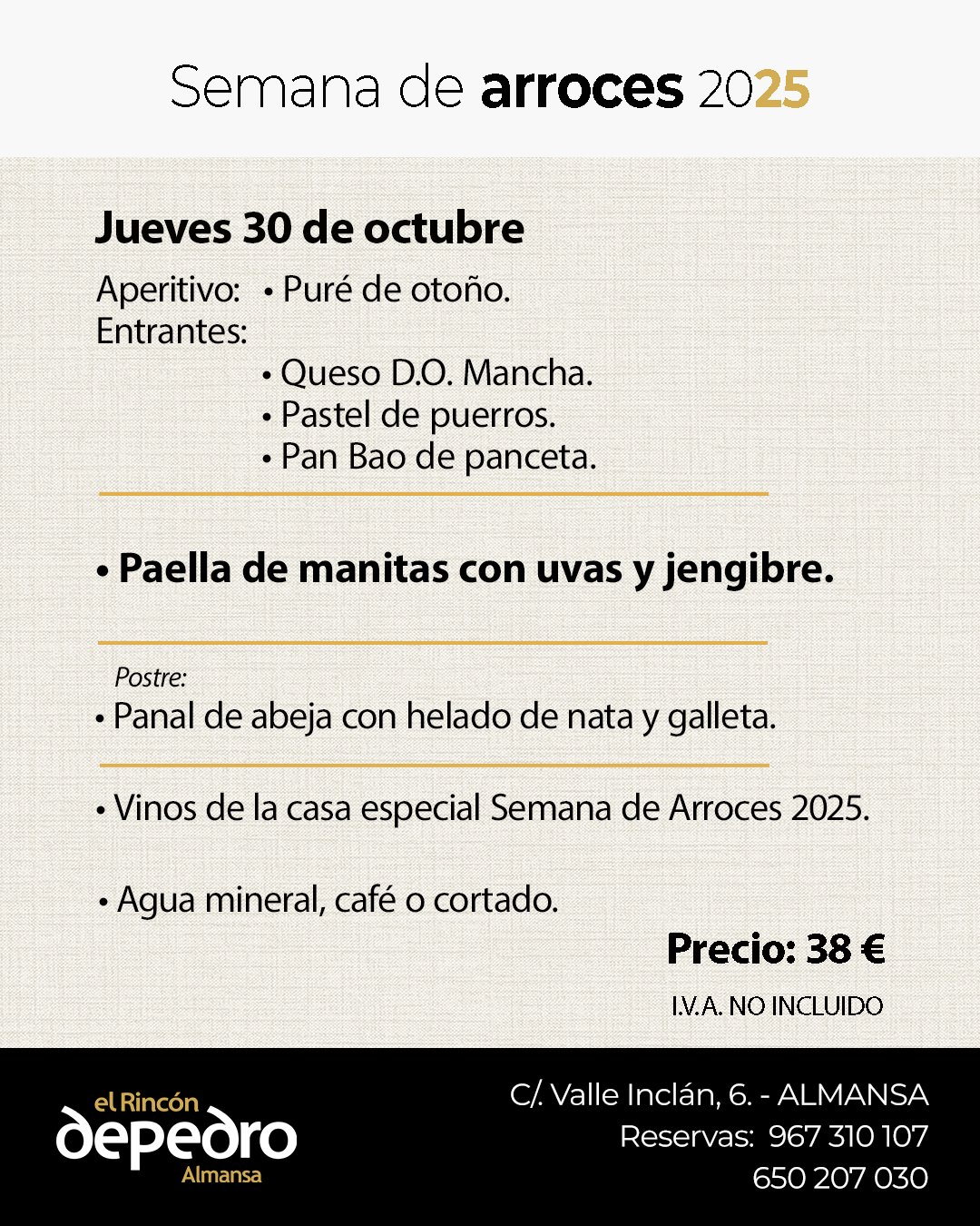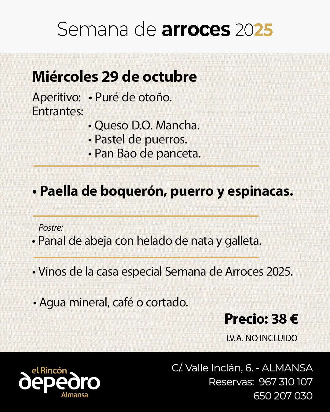 Ya puedes reservar tu mesa en el 967 310 107 o en el 650 207 030.